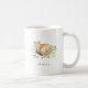 Woodland inspired mug features a sweet watercolor fox nestled in a bed of green eucalyptus leaves and foliage. Personalise with a name, initial or monogram beneath in classic grey lettering.