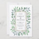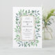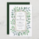 A watercolour frame of gentle green leaves bordering a faux gilded geometric frame. Summer themed wedding invitation with a rustic boho feel. This woodsy invite perfect for an outdoor summer or spring wedding has a dark Hunters green rear, to contrast but compliment the soft watercolour greenery.