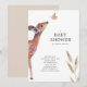 A modern woodland baby shower invitation. Matching items available in the Modern Woodland Fawn Baby Shower Theme collection.