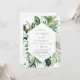 This woodland greenery casual wedding invitation is perfect for a summer or fall wedding. The modern boho design features lush emerald, sage and olive green watercolor leaves and botanicals with sprigs of elegant white flowers.