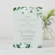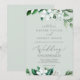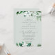 This woodland greenery mint green wedding invitation card is perfect for a summer or fall wedding. The modern boho design features lush emerald, sage and olive green watercolor leaves and botanicals with sprigs of elegant white flowers.
