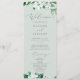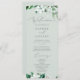 This woodland greenery mint green wedding program is perfect for a summer or fall wedding. The modern boho design features lush emerald, sage and olive green watercolor leaves and botanicals with sprigs of elegant white flowers. Include the name of the bride and groom, the wedding date and location, thank you message, order of service, bridal party and an optional "in loving memory" memorial.