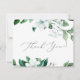 This woodland greenery thank you card is perfect for a summer or fall wedding. The modern boho design features lush emerald, sage and olive green watercolor leaves and botanicals with sprigs of elegant white flowers. Personalise the back of the card with your names, and a thank you message. Alternatively, leave the thank you message template section blank to hand write a personalised note on each card after they arrive. These cards can be used for a wedding, bridal shower, or any special event.