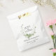 Watercolor woodland botanical foliage wreath in shades of green, personalised wedding favour bags. Personalise text and customise font style, colour and size.