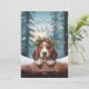 Woodland Happy Christmas Wishes Basset Hound Puppy Holiday Card