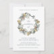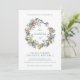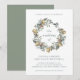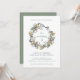This lovely holiday wedding invitation features a watercolor wreath full of crisp golden pears and forest mushrooms, and lots of green foliage.