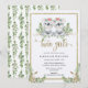 Watercolor eucalyptus greenery, cute koala’s and pink roses with an elegant gold frame and the words ‘twin girls’ in faux gold and a beautiful heart calligraphy font. A stylish baby shower invitation that will set the tone for your elegant event.
