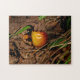 An orange-brown mushroom sprouts from the forest floor surrounded by an abundance of dead brown leaves. The mushroom and nearby green grass is the only colour among the dead leaves. If you like macro photography, our "Woodland Mushroom Jigsaw Puzzle" is for you. Order yours today!