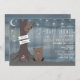 A baby shower invitation featuring an illustration of a mother and baby bear resting under and in a tree in the forest at night under the stars and moon.