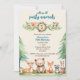 Calling all party animals- Woodland Animals Birthday Party Invitation! Cute woodland animals theme birthday invitation featuring illustrations of a possum, doe, bear, fox, racoon, mouse, moose and owl in forest scene. Personalise the number for the birthday invitation.