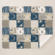 Woodland Patchwork Sherpa Blanket in Navy And Tan