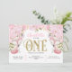 Woodland, Pink Floral, Fox, Girl, 1st birthday Invitation