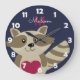 Woodland Raccoon Adorable Monogrammed Personalized Large Clock
