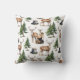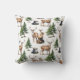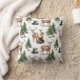 A winter season throw pillow featuring a watercolor-painted reindeer family in a woodland forest on a natural white background.