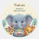 Add a sweet finishing touch to your child’s birthday celebration with this woodland storybook animals thank you sticker. Featuring a gentle illustrated elephant, deer, and lion with a birthday cake, this design is perfect for party favors, treat bags, gift wrapping, and thank you gifts.