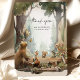 Introducing the Woodland Baby Shower Party Invitation! This adorable invitation features a charming woodland scene with a cute bear, butterfly, deer, fox, squirrel, racoon, hedgehog, and owl.