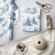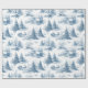 Wrap your gifts in timeless elegance with this blue and white woodland toile Christmas pattern. Featuring delicate illustrations of snowy forests, rustic cabin houses, elk deer, pine trees, and winter foliage, this classic design brings a serene, storybook charm to your holiday season. The crisp blue and white palette adds a refined touch to traditional Christmas gifting, perfect for those who love nature-inspired holiday style.