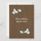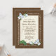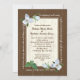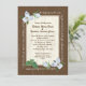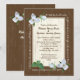 Pretty white trillium woodland wildflowers over a wood look frame wedding invitation. Customise text style and fonts as preferred.
