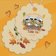 Cute favour tags for a twin baby shower with a woodland theme . It features two little raccoons sitting on some autumn leaves , holding a milk baby bottle . Personalise the text with your own . Look in our collection for additional choices .
