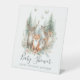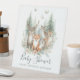 A soft watercolor illustration of woodland animals in the forest surrounded by flowers. Lovely for a gender neutral celebration.