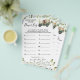 Woodland Animals What is in the Diaper Bag Baby Shower Card. Change wording to the design. For additional customisation (change the number of items and any other wording, font colour, font style ), click on personalise, scroll down and click on the link "click to customise further". HOW TO PLAY: Fill a diaper bag with 12 baby essentials, guests will write down baby items they think are in the diaper bag. The person with the most correct guesses wins.