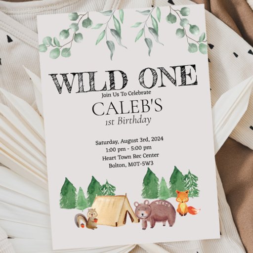 This is going to be a Wild-ONE! Come celebrate with these cute woodland themed children's birthday party napkins which will tie into your woodland themed birthday party perfectly! With soft crayon-like brown, green and orange forest illustrations. Customisable to your needs.