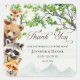 This baby shower thank you sticker adds a sweet finishing touch to your celebration. Featuring charming woodland wildlife and soft greenery, it’s perfect for sealing favor bags, boxes, or envelopes while thanking guests for showering your family with love in a warm, storybook style.
