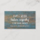 Distressed wood, custom business card template with white text in various fonts. Customise four lines over blue painted wood image. Reverse is blank. Changing the size may mean the design and / or wording does not fit correctly.