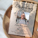 The perfect memorial invitation for your loved one's celebration of life - Especially for someone who loves woodworking. The design features a square personal photo, 6 lines of custom text and a background photo of a woodworking shop. You can easily change this out with your own photo background. Classic yet unique - this template is so easy to personalise and will make a wonderful memorial keepsake too.