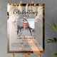 The perfect memorial poster for greeting family and friends as they enter your loved one's celebration of life. Especially for someone who loves woodworking the design features a square personal photo, 5 lines of custom text and a background photo of a woodworking shop. You can easily change this out with your own photo background. Classic yet unique - this template is so easy to personalise and will make a wonderful memorial keepsake too.