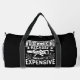This black duffle bag features a humourous design perfect for woodworkers, stating "WOODWORKING BECAUSE THERAPY IS EXPENSIVE." It includes graphics of various woodworking tools like a saw, hammer, and chisel, making it an ideal gift for crafters and DIY enthusiasts. Show off your passion and practical approach to mental well-being! Edit colour of the bag caps and body in the Design tool to your favored colours.