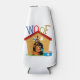 A cute dog with a ball and dish of food, a dog house, and colourful text that reads WOOF on Woof Dog T-shirts, hoodies, mugs, bags, cards, stickers, key chains, buttons, magnets, dry erase boards, electronic cases and sleeves, paper plates and napkins, and many other dog design items!