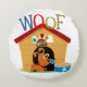 A cute dog with a ball and dish of food, a dog house, and colourful text that reads WOOF on Woof Dog T-shirts, hoodies, mugs, bags, cards, stickers, key chains, buttons, magnets, dry erase boards, electronic cases and sleeves, paper plates and napkins, and many other dog design items!
