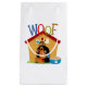 A cute dog with a ball and dish of food, a dog house, and colourful text that reads WOOF on Woof Dog T-shirts, hoodies, mugs, bags, cards, stickers, key chains, buttons, magnets, dry erase boards, electronic cases and sleeves, paper plates and napkins, and many other dog design items!