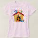 A cute dog with a ball and dish of food, a dog house, and colourful text that reads WOOF on Woof Dog T-shirts, long sleeve tees, bodysuits, football bodysuits, organic bodysuits, pullover hoodies, sweatshirts, rompers, hats, and other kids, baby, and toddler apparel!