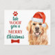 Woof You Merry Christmas Cute Dog Golden Retriever Holiday Postcard