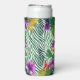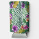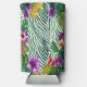 The picture shows a lively mosaic of lush Monstera leaves in lush green and yellow, combined with magnificent purple and orange flowers that stand out against a dynamic, wave-like background. It radiates a wild, tropical energy and a joyful abundance, which awakens curiosity and a natural connection.