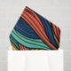 Is a vibrant and eye-catching one, featuring a colourful paisley pattern that gives the impression of being woven from numerous wool threads. The colour palette consists of four distinct and lively colours: yellow, turquoise, dark blue, and orange.