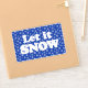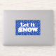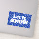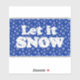 Sticker in "Let it SNOW" word art patterned with white-on-white snow on a scattered snowflake background on deep blue