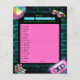 Bring some brain-teasing fun to your 90s-themed birthday party with Neon Vibes: 90s Disco Birthday Word Scramble Game. This colourful game sheet features a mix of birthday and 90s-related words, all scrambled up and ready for your guests to unscramble. Key: 1. invitation 2. confetti 3. wrapped 4. friends 5. disco 6. celebrate 7. birthday 8. surprise 9. countdown 10. champagne 11. dancing 12. drinking 13. partying 14. jukebox 15. graffiti 16. ice cream 17. cassette 18. retro 19. balloon. All the words are customisable, allowing you to replace them with your own words to make the game even more personal and fun. Pair it with our matching invitations, napkins, and coasters for a fully coordinated party. For more matching products, check out our full collection.