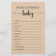 Purchase this game and enjoy high quality Word Scramble baby card for your event! Gender neutral Kraft paper design.