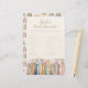 (Choose MATT paper finish - NOT semi-gloss - to write on.) Stimulate your guests' minds with our "Bridal Word Scramble" book-themed game. This engaging activity is adorned with our signature book and wildflower pattern, offering challenge and charm at your bridal shower. (Answer Key - honeymoon, reception, groom, bouquet, first dance, invitation, husband, marriage, groomsmen, bridesmaid, love, bridal shower, save the date, engaged, wife, marriage, kiss the bride, bride to be, tie the knot, wedding bliss)