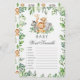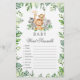 Cute "Word Scramble" game designed for a gender neutral baby shower, featuring adorable Safari Jungle animals, including an elephant, lion, monkey, zebra, and giraffe, surrounded by lush palm leaves and greenery. This charming game is perfect for entertaining your guests, adding a touch of fun and excitement to your celebration, and creating lasting memories of your special day.