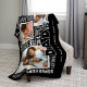 Celebrate your special and wonderful father in your life with our memorable and unique words for dad, father's day black fleece blanket. The design features a collage of different words for dad combined with a three photo layout to display your own special family photos. Black background with the words displayed in fun typographic design. Personalise the banner with your father's name and add your names to the front. The perfect gift for father's day, birthday, etc.