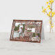 Celebrate your special and wonderful father in your life with our memorable and unique words for dad greeting card. The design features a collage of different words for dad combined with a three photo layout to display your own special family photos. A woodgrain textured background with the words displayed in fun typographic design. Personalise the banner with your father's name. The perfect card for father's day, birthday, etc.