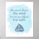 Words of wisdom on for a positive mentality especially for someone who is undergoing some big changes in life. The quote in blue reads "We cannot direct the wind but we can adjust the sails." We cannot control what life presents to us but we can try our best to make wise choices given the circumstances which may even benefit us. The design includes a sail boat on a pastel blue watercolour like background. Blue colour palette makes this a relaxing and calming decorative piece for the home.