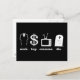 work buy consume die postcard