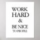 Work Hard and Be Nice to people. A simple reminder office or home print.