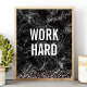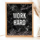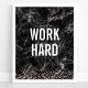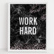 Work Hard Black Marble Rose Gold Glitter Quote Poster