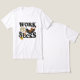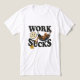 Bold skeleton in a hammock under Work Sucks text; vibrant palette, cheeky office humour, ideal for casual tees and gift-orientated apparel.